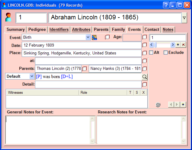 - Event Type - birth, death, census, etc., choosing from event