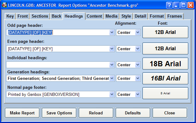 The headings on a report identify the current section or generation. They can also identify the report or author. Headings are like road signs that tell the reader where he is and what he is reading. They can appear at the top or bottom of each page, and before the beginning of each section. Headings are specified on the Headings page.